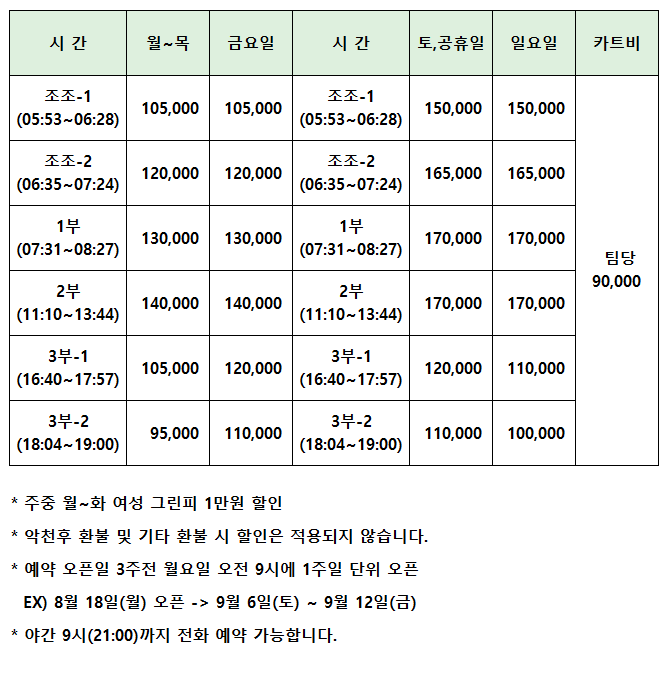 2025년 9월 티오프 시간 및 이용요금 안내 25. 9. 15 ~ 9. 30