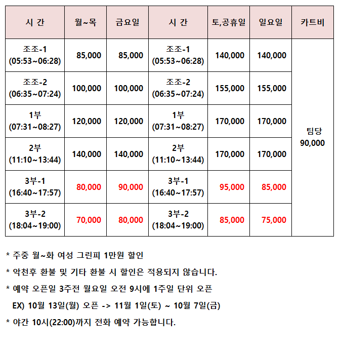 2025년 11월 티오프 시간 및 이용요금 안내 25. 11. 1 ~ 11. 30