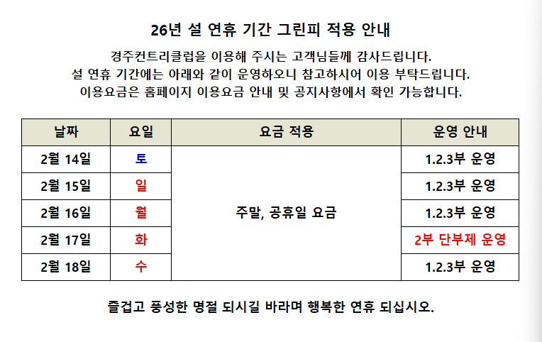2026년 설 연휴 운영 안내